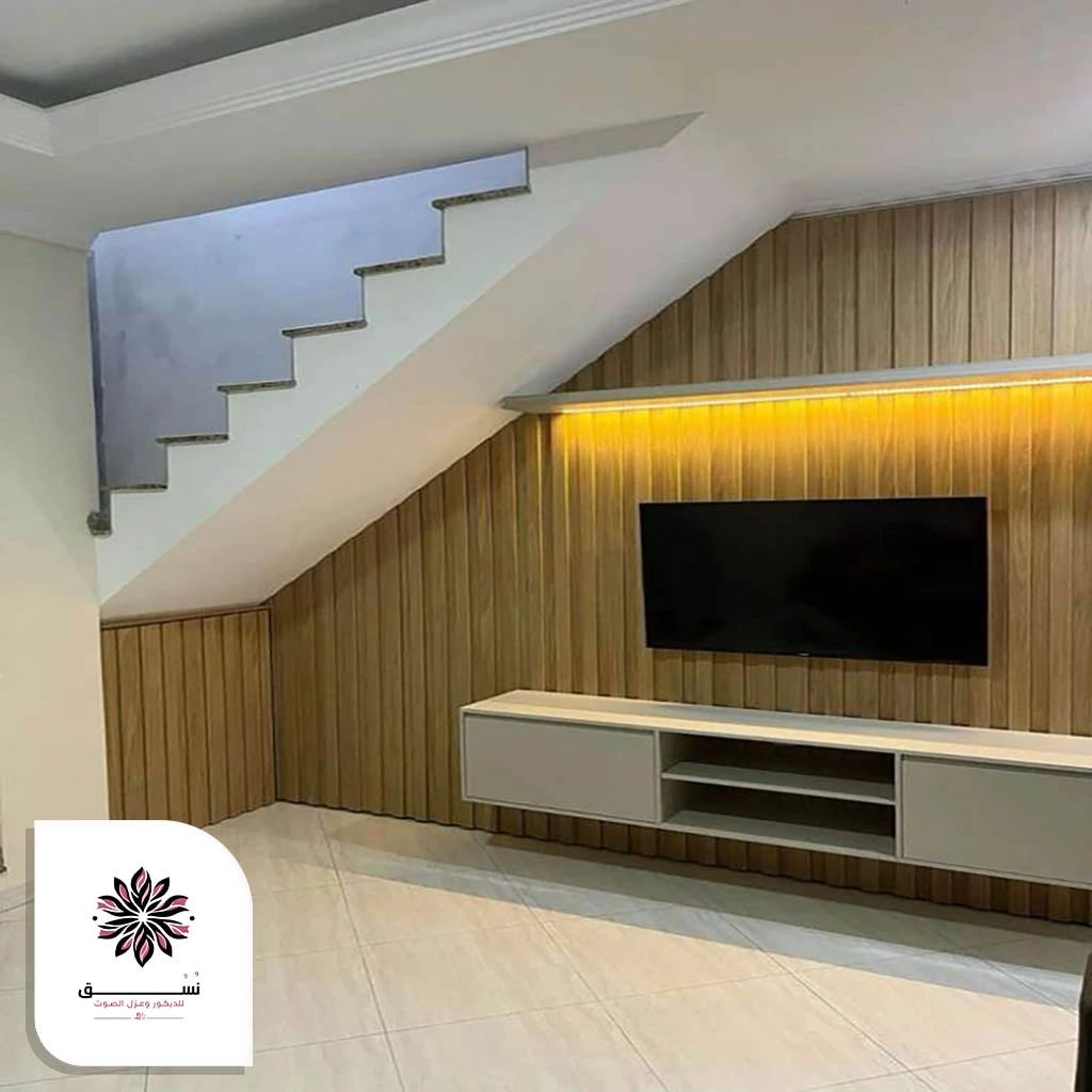 ديكور تلفزيون تحت الدرج الدمام لاستغلال أنيق للمساحة