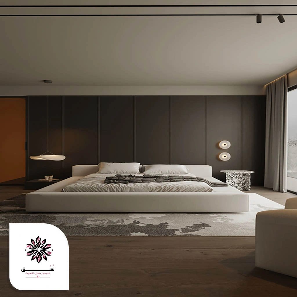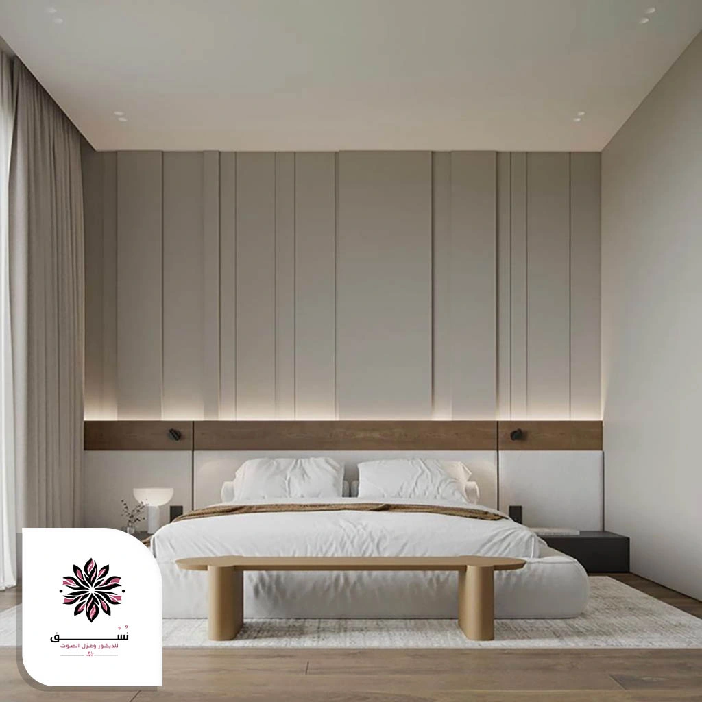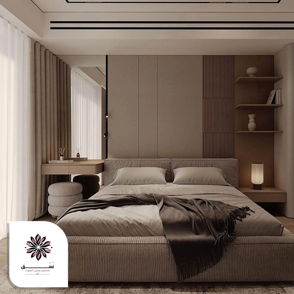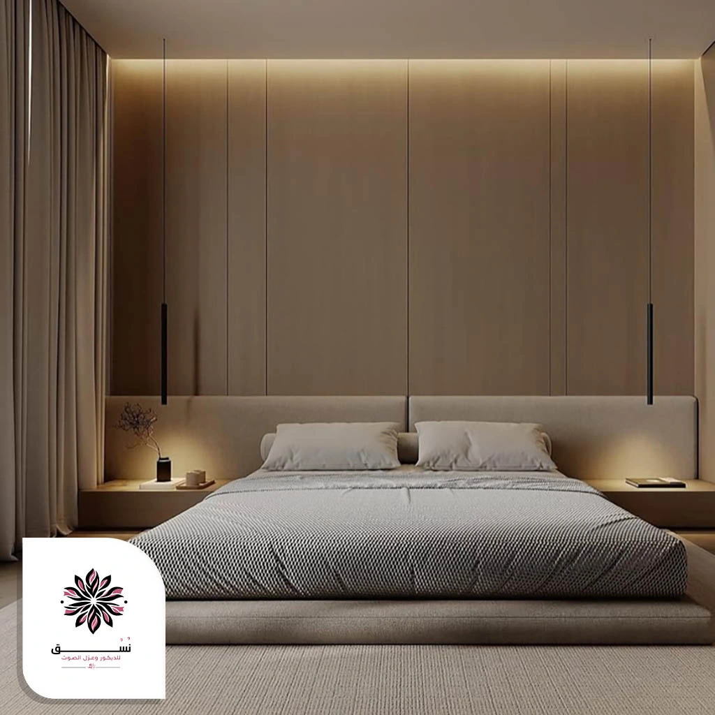 يعتمد ديكور خلف السرير مودرن الظهران على البساطة المدروسة، حيث يتم التركيز على الخطوط النظيفة والألوان الهادئة. بذلك، يتحقق توازن بصري يمنح الغرفة شعورًا بالاتساع والراحة.